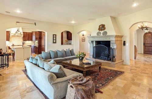 Welcome to Villa Capricho, a luxurious vacation home located in the heart of California's wine country. This expansive 25-acre estate is part of a gated community and sits on a private vineyard, overlooking Suisun Valley. Just 15 miles east of Napa, Villa Capricho offers stunning 360-degree views of the surrounding countryside. The double-gated entrance and private road provide the utmost sense of privacy and seclusion while its beautiful landscaping and olive grove create a tranquil setting for guests to unwind and enjoy the natural beauty of the area.