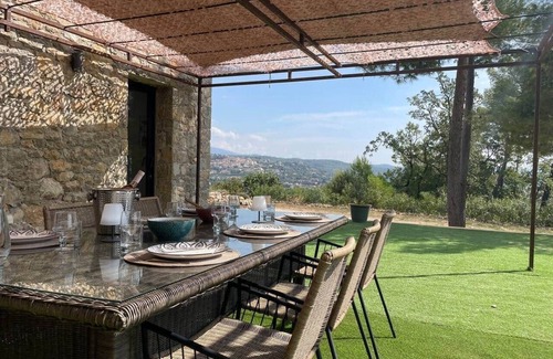 Bienvenue dans notre propriété familiale, profitez du charme de cette magnifique maison avec vue imprenable sur toute la vallée, piscine privée . La maison allie confort, tranquillité et authenticité. Entre mer et montage, point de départ pour vivre à l'infini des découvertes avec la nature, l'air pur et la lumière Provençale. Proche de tous les villages avec leurs marchés , tous les commerces. Lac de St Cassien, Cannes , Saint-Tropez , Aéroport international de Nice, Monaco , Italie Notre mas en pierre peut accueillir très confortablement 6 personnes . Idéal pour les familles, les couples ou groupes d'amis. L'intérieur est décoré avec goût. Au rez de chaussée, cuisine ouverte, buanderie, bel espace séjour avec vue, WC avec lave-mains indépendant. Une chambre avec sa salle de douche privative , literie grand confort 160 X200 . A l'étage , une grande chambre avec lit grand confort 160 X200 , une chambre avec deux lits grands conforts 90 X200 , une grande salle de douche avec WC. Mezzanine pour lecture et télétravail Wifi fibre Deux grands espaces extérieurs , avec vue imprenable sur la vallée et le village et accès à sa piscine privée. La totalité du mas et sa piscine privée et aussi ses terrasses. WIFI fibre haut débit et TV câble Parking privé avec un accès portail automatique. Nous sommes disponibles et sur place. Quartier à une altitude de 330 m qui bénéficie d'une vue panoramique dans une ambiance calme . Nombreux chemins de randonnées forestières A pied, vélo, voiture Deux gentils chiens