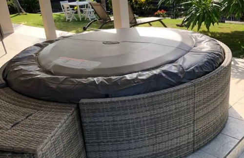 Relax in the hot tub (enjoy the outdoor furniture!) or sip a drink in the garden of this vacation home. As for the great indoors, you can come inside and enjoy the WiFi, TV, and stereo.