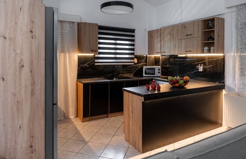 As you enter the house there is a spacious open plan living space with dining area, a cozy living room with fireplace including a sofa that can be transformed into a single bed and a fully equipped kitchen which has all the necessary home appliances such as microwave, oven , cooker, dishwasher, washing machine, a big fridge/ freezer, nespresso coffee maker, kettle, grill/sandwich maker. There is a full set of cutlery, cooking utensils and glassware. In the storage rooms you will also find an iron, ironing board and first aid kit. There are two smart TV with satellite and connection to Netflix (only one of the two) ,music system and air condition units in every bedroom (use of a/c is included in the price). From the living room you have access to the veranda with amazing view. Leading through from the living room brings you to the spacious double bedroom. Next to this bedroom there is another one which consists of two single beds. Another spacious shaded veranda with dining area and a bbq to prepare your meals is also on the same floor. There is no better place to relax and have your dinner overlooking the sea and the landscape! On the ground floor there is also one of the bathrooms.