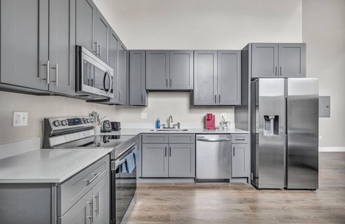 ➹ Prepare meals in our fully-equipped kitchen for your group. Then unwind with our 65" Smart TV in the evenings.