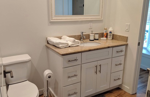 Nestled in a bustling city, this lovely building offers two nice bedrooms with queen beds. Guests can enjoy the convenience of amenities like AC, WiFi, and a washing machine. The two bathrooms come equipped with a bathtub and a hair dryer. Experience the serene atmosphere of this property and make the most of your stay in the vibrant city. We hope you enjoy what our place and the city has to offer. All utilties are inlcuded. One free parking space in gated area and for longer term guests with second car a street guest can be obtained. First floor with five step with private entry gate and front door. Guest has exclusive access to private rose garden in front of the unit.