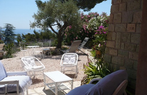 Backing onto the hill, overlooking the sea at an altitude of 50 m, this ground floor of villa with 2 large rooms, independent and pretty, equidistant between Saint Tropez and Estérel (25 kms) can accommodate up to to 4 people on approximately 75 m2.