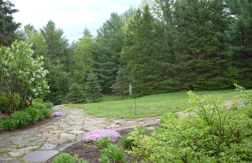 Allplay, a classic mid-century cottage, is beautifully situated on nearly 1.5 acres of landscaped grounds where views of the Sentinel Range peek through the trees. The house has been lovingly furnished in a combination of classic Danish modern and quality rustic pieces, with hardwood floors and beautiful rugs throughout. Its quiet but convenient location and charming interior make Allplay a unique and cherished retreat. Built by well-known New York architect Ronald Allwork for his own family, the house is located at the base of Cobble Hill, about a 1.5 mile walk into the center of Lake Placid village. Note that the house has a near neighbor, a cottage that was the original garage for the house.