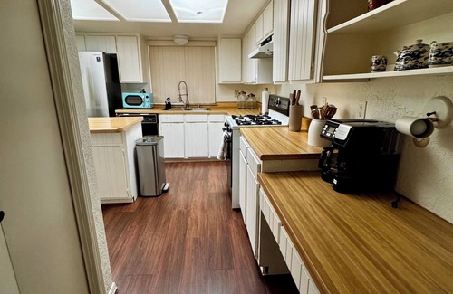 Get ready to relax in this marvelous 3-bedroom house in El Paso. This peaceful retreat offers everything you need for a memorable stay. The bedrooms feature a comfortable king bed and two cozy queen beds, ensuring a restful night's sleep for all guests. With amenities like heating, hair dryer, AC, washing machine, iron, and WiFi, you'll have everything you need at your fingertips. The two bathrooms are equipped with towels and shower basics for your convenience. Whether you're exploring the city or simply unwinding in the comfort of this terrific property, you're sure to make fantastic memories with a stay at our place.