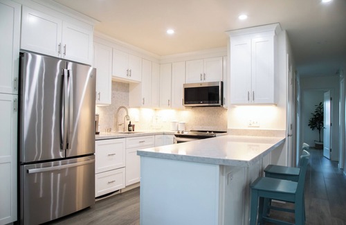 --Modern Upgrades: The kitchen and bathrooms have been recently remodeled with new cabinets and appliances. The kitchen comes fully equipped with an oven, stove, dishwasher, full-size refrigerator, and microwave.