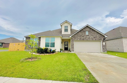 Located in Lake Charles, this lovely house boasts 4 bedrooms including 2 king beds, 2 queen beds, and 1 bunk bed. With 3 bathrooms, including a bathtub, guests will feel right at home. Enjoy the convenience of amenities like a washing machine, heating, WiFi, AC, and an iron. Kickback, relax, and enjoy everything Lake Charles and our house has to offer.