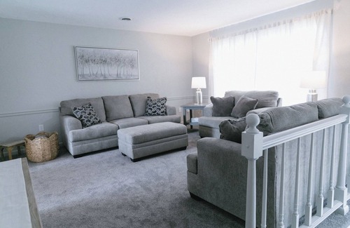 Nestled in Gettysburg, this delightful house is a charming retreat for guests. With 4 cozy bedrooms including a king bed, 2 queen beds, a bunk bed that includes a twin and a double, everyone will have a comfortable place to rest. The 3 bathrooms are equipped with showers for convenience. Enjoy the modern amenities like WiFi, AC, heating, and a washing machine. Kitchen is fully stocked with plates, silverware, coffee pot and coffee, spices etc. There is also a grill and patio table on the deck out back in case you want to cook. The basement offers a living area with TV and a round table to play games. Book now and enjoy everything this house has to offer.
