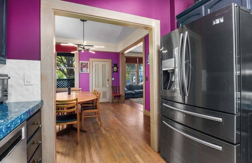 Welcome to Beach Hill, one of Santa Cruz's most sought-after neighborhoods! Our cozy, family-friendly,dog-friendly, newly updated 1868 purple 'Painted Lady' Victorian home is just a 2-minute walk to the beach, boardwalk, and downtown area, bustling with restaurants, bars, and cafes. Step outside to catch a glimpse of the Pacific Ocean and feel the soothing ocean breeze, your perfect escape awaits.