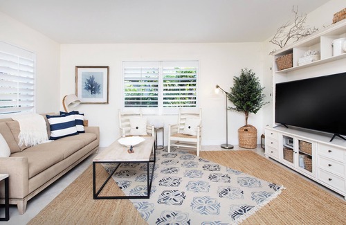 This cottage is beautifully furnished and tastefully decorated in light ‚sea, salt and sand’ colors, with mostly Pottery Barn furniture. Its warm and inviting ambience with many updates, which includes a quiet fenced backyard with a newly built & PRIVATe saltwater pool (southern exposure), a contemporary & fully equipped kitchen with stainless steal appliances and granite countertops throughout will leave you feeling right at home. It also delivers appealing amenities such as a Flat-screen TV, a ‘Bose’ sound system as well as high speed internet throughout the home. The sun deck features lounge chaises, an outdoor dining table seating six, as well as a classic one touch original Weber charcoal grill.
