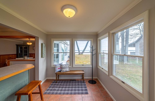 No matter when you visit, our four season lakefront cottage has something to offer everyone. Come enjoy and start making Pure Michigan memories in this charming cottage on beautiful Black Lake. A well equipped spacious kitchen will make cooking meals a breeze. A dining room that is perfect for both family or candlelight dinners for two. Our cozy living room with lake views, is the perfect place to binge watch your favorite series, watch a game or cuddle up with a good book. Step out to the sunroom for the best sunrises over Black Lake, a wonderful place to sip a glass of wine and soak it all in after a great day. The table in the sunroom is ideal for puzzles or family game night. Off of the sunroom, you'll find a deck with an eating area and a grill. A fire pit with adirondack chairs lakeside is lake life at its finest. Also on the first floor you will find a full laundry room, luxurious master bedroom with king bed and a large full bath with double vanity. Upstairs you'll find a bunk room with two sets of bunk beds, a bedroom with a queen bed, a bedroom with a full size bed, a half bath and a hangout space perfect for the kiddos (complete with futon, TV, DVD player and classic Nintendo games). Located minutes away from ATV/snowmobile trails and golf. Bringing your boat, message owner. Kayaks, lilypad, hammock, cornhole, badminton and paddleboards available for your use. We have recently added a lined pickleball court with a net, paddles and balls. Lake frontage is fairly shallow, clear and sandy bottom: perfect for kiddos. Look no further, this is it!