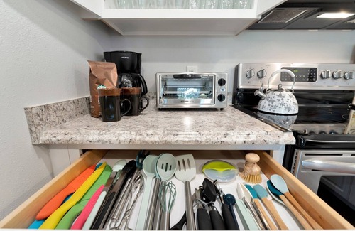 There is a fully supplied kitchen for your at-home meal needs. Beach supplies are provided including towels, cooler, beach bag, chairs and umbrella. The backyard shed is large enough for you to store your bikes should you choose to bring them along as the famous 45 mile Pinellas Trail is easily accessible by foot or bike just .3 miles from Hidden Treasures house.