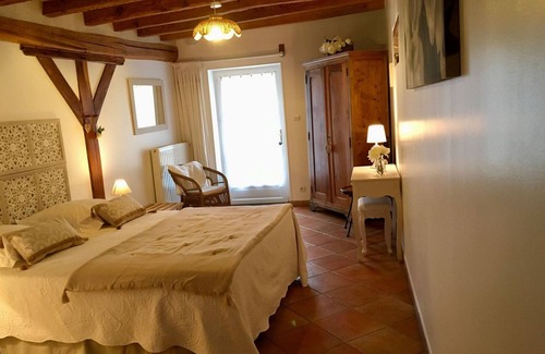 Two single-story guest rooms housed in a former farmhouse with discreet charm. Breakfast is served in the cozy dining room, under the arbor in the garden, or in the courtyard, where an old wine press stands. Free internet access. Extra bed (120 cm) or rollaway bed: €25. 15% off from the 3rd night. Room No. 1 is on the ground floor, housed in a former farmhouse with discreet charm (1 double bed 160 x 200 cm). Private bathroom and toilet. 15% off from the 3rd night. Pets allowed under certain conditions. Private access.
