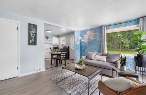 Peoria welcomes you to this exceptional 1-bedroom corporate apartment. Our space ensures a homely feel during your travels in Peoria. Situated in a prime location, it's close to the Peoria Zoo, Caterpillar Inc Bradley University, and major hospitals. The apartment is outfitted with heating, AC, a drive-in garage, fenced yard, new appliances, an in-unit washer/dryer, high-speed Wi-Fi, a Smart TV, blackout curtains, security cameras, and keyless entry, all designed to make your stay relaxing and worry-free.