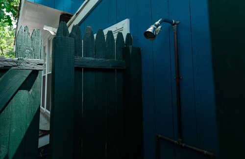 The cottage is rich with quaint character and cozy appeal. The bright and sunny interior features an open-concept layout and exposed beam ceilings, with features including a full kitchen, a dining nook, and a comfortable living area. The front patio offers picturesque views overlooking the landscaped yard while the private back deck comes furnished for outdoor living and dining. There's even an outdoor shower for rinsing off after trips to the beach. Smart TVs are provided in the living room and both bedrooms for convenient home entertainment. Free WiFi is also equipped throughout the cottage.