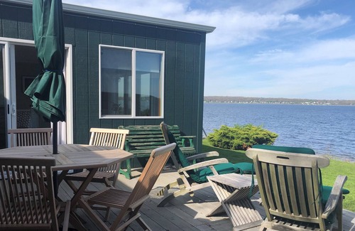 Now sought after by New England museums, the trolley has been restored to as close to original as possible, right up to the ceilings and glue-glass windows. The "great room" is now a studio style, large bedroom w/ double bed, sleeper sofa, 12 ft. sliding glass doors facing the west shore and sliders facing north and leading to the private deck and outdoor shower. The Galley kitchen has a two burner induction range, mini-fridge, microwave, toaster and coffee maker. The new full bathroom has a tile shower and antique sink; both kitchen and bath have hand crafted counter tops and cabinets.