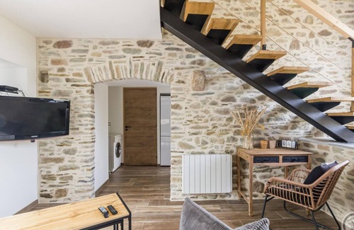 Detached house. Living room (TV, ADSL internet, desk). Kitchenette (oven, induction hob, dishwasher, microwave). Laundry room (washing machine, refrigerator with freezer). Separate toilet. Shower room with walk-in shower. On the 1st floor: bedroom 1 (160x200 bed), bedroom 2 (2 90x190 beds) and bathroom (toilet and vanity unit). Baby equipment on request. Electric heating included. All charges included. Towels provided and sheets for hire. Cleaning service at an additional cost. Accessible on the half-level, private enclosed terrace. Garden furniture. Barbecue. Opposite Jean-Luc and Catherine's house, this old schist stone barn is a charming address for your vacation. Designed in a loft workshop style, the cottage offers a generous living space and a long, east-facing private terrace. This terrace overlooks a natural meadow, not overlooked, and offers a lovely view of the sea! Although it doesn't have a garden, you still benefit from a green and peaceful environment. The swaying of the tall grass in the breeze is soothing. The upstairs bedrooms are separated by a mezzanine landing and share a lovely bathroom. You'll surely fall in love with the large bedroom with its light-filled glass roof. You can walk to Bretteville beach and explore the magnificent surrounding coastal landscapes, dotted with coves, lighthouses, and picturesque hamlets...