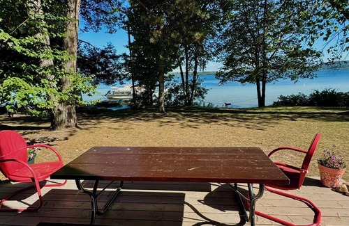 Traveling with kids? You're in for something special. This lakefront neighborhood was once a family resort, and while most of the cottages are now private homes, a few—including this one—still welcome guests. That means you get the charm of a resort community with the quiet and space of a private retreat. Your little ones will love the playground, volleyball net, basketball hoop, giant sandbox, and wide dock with benches (great for fishing). There’s even a fish-cleaning station for your daily catch! Best of all, there’s a good chance they’ll find instant playmates—just like I did as a kid.
