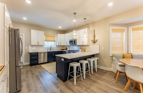 Have fun with the whole family less than 2 miles from Pere Marquette Beach! This charming 3 bedroom, 2 full bath bungalow is located in the beloved Lakeside neighborhood in Muskegon, MI. Walking distance to neighborhood bar and restaurants, two blocks to the Muskegon Lakeshore bike trail and a quick 5 minute drive to Lake Michigan beach. We have carefully curated all of the amenities needed for a wonderful Unsalted Lake Michigan getaway!