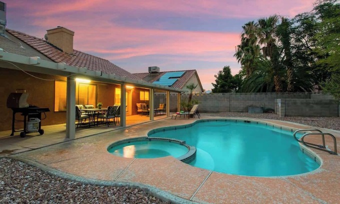 Best-rates for the North Las Vegas house starts from $642 per night with includes Barbecue/Outdoor Cooking, Internet, Air Conditioner, TV, Child Friendly, Hot Tub, Kitchen, Laundry, Pet Friendly, Pool, Private Pool, Balcony/Terrace, Security/Safety, Wellness Facilities with all other facilities. Casai.ca matches every traveler with their perfect accommodation, whether you are traveling with a group, friends, family, or pets.