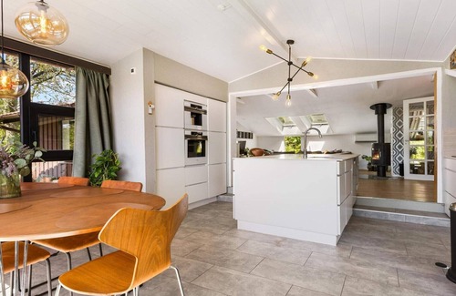 This charming holiday home offers a unique, welcoming atmosphere with its staggered levels and cozy, personalized design. The open kitchen and family room flow seamlessly into the living area, complete with a wood-burning stove. Large windows provide stunning views of the surrounding countryside, while the sunken spa on the spacious terrace invites relaxation. Sleeping up to 6 people, the home features 3 bedrooms, including two double beds and a bunk bed, making it ideal for families or small groups. Non-smoking and youth groups are not allowed, ensuring a peaceful stay. Outside, the property offers a large terrace area perfect for enjoying the Danish summer. A barbecue, lounge area with soft sofas, and outdoor dining space provide plenty of options for alfresco living. Surrounded by beautiful nature, the house is just 1200 meters from the beach and 1500 meters from shops and restaurants, offering the perfect balance of seclusion and accessibility. It’s an ideal spot for scenic walks or simply unwinding in a peaceful setting. The location offers easy access to nearby attractions, including Løkken, Blokhus, Jambo Feriepark, Fun Art, and Fårup Sommerland. With so many family-friendly activities and natural beauty to explore, this holiday home serves as an excellent base for making memories, whether you’re seeking relaxation or adventure.