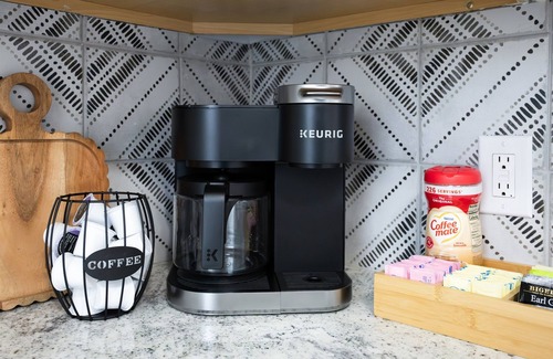 ☀ Modern and well-equipped full kitchen with stainless steel appliances and a coffee bar w/ Keurig and Drip Coffee Maker