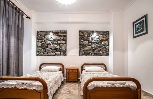 Wake up to unforgettable sunrises and fall asleep to the soothing sound of waves crashing on the shore. Relax at this beachfront neoclassical building with beautiful inner stone walls, renovated in 2017. Spend the day at the beach, explore the island's capital and have a delicious seafood dinner at sunset at the restaurant nearby.