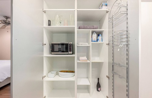 The Patio 71 community is peaceful, friendly, and filled with amenities. The unit itself has a mid-century modern flair with quality appliances, including a brand-new washer and dryer. The kitchen is stocked with high-end cookware and plenty of dishes. Storage is abundant throughout the home, including an outdoor storage room. Both front and back patios feature beautiful flowers and plants, kept vibrant by an automatic drip system. Inside, there are two comfortable queen bedrooms, each with its own dresser and set of linens. Fast WiFi and a Smart TV make it easy to stay connected and entertained.
