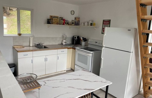 The home is equipped with a full kitchen