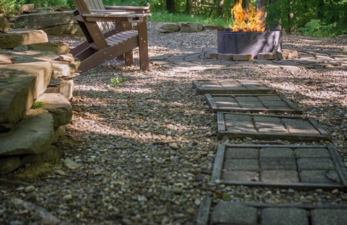 Great outdoor living includes your own fire pit (wood is available for sale) with Adirondack chairs.