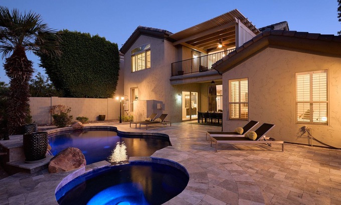 Best-rates for the Camelback East house starts from $958 per night with includes Kitchen, Sports/Activities, Guest Services, Child Friendly, Laundry, Private Pool, Wellness Facilities, Air Conditioner, Parking, Pool, TV, Balcony/Terrace, Security/Safety, Bedding/Linens, Fireplace/Heating, Barbecue/Outdoor Cooking, Hot Tub, Internet with all other facilities. Casai.ca matches every traveler with their perfect accommodation, whether you are traveling with a group, friends, family, or pets.