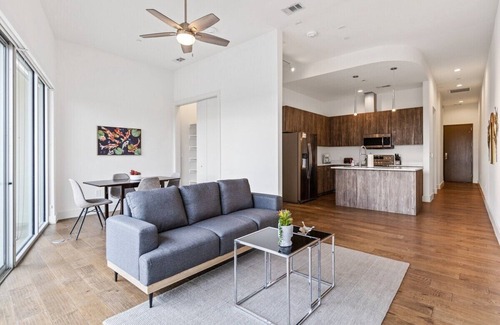 Located in the heart of Dallas this fabulous contemporary space offers the true feel of a 5 star hotel! Just adjacent to Downtown! Whether traveling for business or leisure, this stylish spot is a perfect layout. Perfect separation of space including 1 king and 2 full baths. All the modern amenities; designer interiors, high WiFi, parking garage, building gym, high end kitchen appliances, 1 Smart TV's, and more!