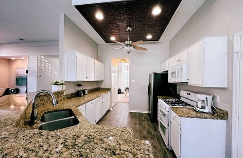 Spacious 5 bedroom home with private swimming pool and game room! This is the perfect place to stay! Enjoy the spacious outdoor living area! Perfect location just 25 Min. to Downtown. The perfect layout for groups or business travel. The stylishly decorated house offers amenities like two car garage parking, fast high-speed WiF, two 55" Smart Tv's, king bed, and more!
