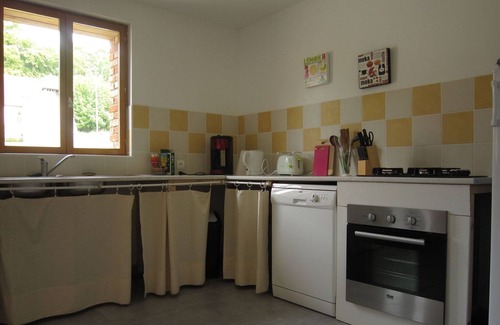 Surrounded by fields of grain and farmland, you will be directed toward the car parking of the holiday rental in France by wooden signs. The accommodation is one of the two spacious gites in former stables, renovated in 2009, with a bbq, modern furnishings and amenities like a dishwasher and a washing machine. The owner has left a number of authentic details intact, retaining the charm of the stable. A children's bed, high chair are present.