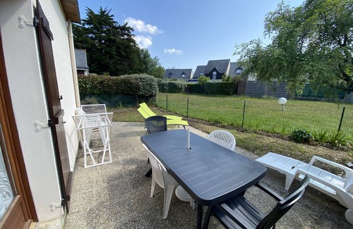 Located on the southern coast of Brittany, 25km from Quiberon and 15km from Carnac, Erdeven behind 300 hectares of protected dunes, bordered by fine sandy beaches, is a megalithic site with dolmens and menhirs among the pines, gorse and broom.The residence consists of small grouped houses, with a shared swimming pool (open from mid-June to mid-September).Beach about 500 m away. Tennis, mini-golf 400 m away. Seasonal shops 200 m away. Centre 3 km away.3-room house of about 34 m² for a maximum of 4 occupants (3 adults max.), comprising:On the ground floor:- Kitchenette with 3 ceramic hobs, fridge with freezer compartment, oven, microwave, coffee maker, kettle, toaster, dishwasher.- Living room with TV and sofa.- Separate toilet.Upstairs (steep stairs):- 1 bedroom with a 140 cm bed.- 1 small bedroom with 2 90 cm bunk beds.- Shower room.Small garden and terrace with garden furniture: deckchair, parasol and barbecue.1 numbered parking space._____Electric heating.Arrival between 4pm and 6pm. Please notify in case of late arrival.Deposit: €250 (to be paid on site)Charges: included from mid-May to mid-October / additional based on meter reading (according to consumption) outside this period.Tourist tax (to be paid on site)One pet allowed on request (additional €25 per week).Bed linen and towels can be rented on request (contact us for rates)Cleaning to be done by the tenant.