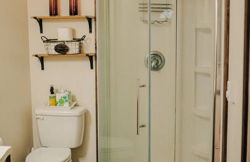 This 720 sq ft guest house is located on private property with only a few bordering neighbors. Its an a extremely safe area with parking! You'll find a king size bed with luxury linens, down comforters and pillows. An open living room, kitchen floor plan and full size dining table, with a fully equipped & stocked kitchen for all of your cooking needs! A bbq is also provided all year round and in the summer there is a great little patio in the back yard, its the perfect spot to sip your morning coffee! A full size washer and dryer and laundry detergent is also provided within the space.