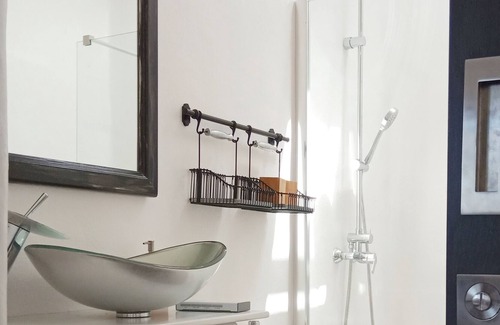 Enjoy stunning views in this comfortable, well-equipped apartment; paperless bathroom with "Inwash" toilet (environmentally - friendly choice), large walk-in shower, hair dryer; gas-free kitchen with induction cooktops, mini-fridge, oven, microwave, dishwasher, coffee maker, kettle; free use of laundry room and clotheslines; iron and ironing board; all kitchen, bedroom and bathroom linens included; baby crib available on request.