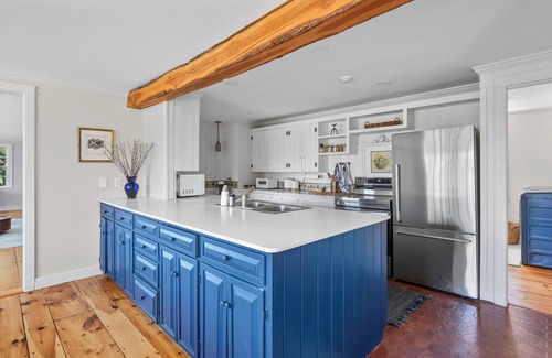 Step inside your Cape Cod retreat, filled with charm and effortless elegance. Western sunlight pours through historic beamed ceilings, gliding across wide pine floors and modern furnishings that blend coastal warmth with refined sophistication. The home features three beautifully appointed bedrooms and three full bathrooms. Gather with loved ones in the open, airy living spaces designed for connection and laughter, or retreat to the private library—a quiet space for reading, a game of chess, or a nightcap with family and friends.