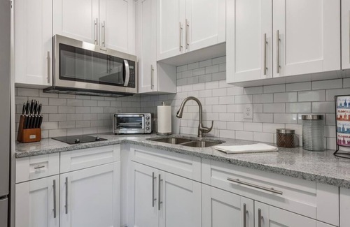 This Stylish 3 bedroom House has 2 kitchens & 2 living rooms, with connecting door that can be closed or opened for privacy. Perfect for families traveling together. Sleeps 11 people. 1st bedroom has queen bed, 2nd bedroom has full bed with twin trundle, 3rd bedroom has queen bed. Both living rooms have a queen memory foam sofa sleeper bed. Large outdoor courtyard with outdoor lights, BBQ grills, firepit and Giant Jenga and Giant Connect 4 games.
