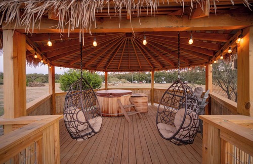 Cockatoo Yurt/Cold A/C! Hot Tub/Grill/Close to Town/River Yurt Village | Cabin in Bandera, TX