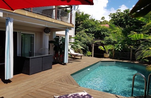 The accommodation is located in the heights of Saint Leu at 300m above sea level. The town and the beaches of Saint Leu are 15 minutes by car.