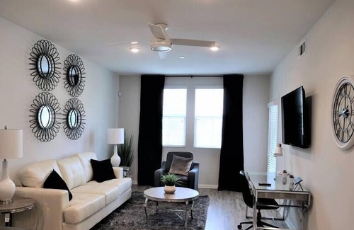 Work from home in this quiet and modern space. Relax and enjoy all this beautiful complex has to offer. Full Kitchen, Wash / Dryer, Fast Internet! During this time, we have increased our cleaning and sanitization methods to ensure every space we offer is a clean and safe place for our guests to rest and feel at home. Our cleaning teams are closely following the CDC’s recommended sanitization plan, thoroughly treating all surfaces to prevent the spread of illness. ★This home includes★ → 55" / 43" Netflix & Amazon TV → Lockbox & Key fob → Fast Wi-Fi (300 Mbps+) → Free onsite parking → Washer/Dryer Enjoy a newly upgraded & beautifully designed fully furnished apartment located in a quiet neighborhood. ★★ 7.5 Mi to Mission Inn / Downtown★★ ★★ 4 Mi Riverside Medical Center ★★ ★★ 1.5 Mi Galleria At Tyler ★★ ★★ 5.6 Mi AMC Tyler Galleria★★ ★★ 7.6 to Superior Court of California ★★ Apt. includes → 1 King bed, 1 sofa bed → 55” Ultra HD 4K TV in the living room and a 43" in the bedroom →Fully equipped kitchen → Air Conditioning → Washer/Dryer → Cleaned by a professional team The kitchen comes with newer appliances, and is fully equipped with: → Pots → Pans → Dishes → Utensils → Cooking oil → Salt+Pepper → Coffee → Tea → Creamer → Sugar ★★CLEANLINESS★★ is a high priority for our listings! There is always a thorough sanitizing/cleaning between guests. Peaceful Neighborhood with plenty of entertainment and restaurants nearby. You get a dedicated garaged parking space for your visit. Parking is assigned and this will be the only available parking space in the complex. Additional parking can be found on the Lincoln Ave on the South side of the complex. Please obey parking signs as violations may result in vehicle being towed at owners' expense.