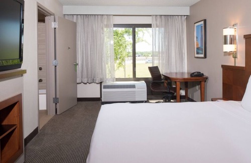 Stay in one of the hotel's spacious rooms, each featuring a granite bathtub and living area with sofa bed. Add to that a working station that’s always helpful for work needs. Meet the mornings with a continental hot breakfast served daily to get you ready for the day, as well as a variety of grab-and-go items to take away at the onsite mini market. Guests may also enjoy year-round use of the outdoor swimming pool and gym facilities, perfect for unwinding in between trips around the city.