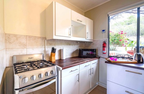 You’ll quickly feel at home in this beautiful stand-alone villa with spacious porch offering much privacy. The living room has a large TV with Roku streaming. In the fully equipped kitchen you'll find a gas stove and oven, pots, pans, utensils for cooking, coffee maker (Nespresso and regular drip coffee maker), toaster oven, blender and water kettle.