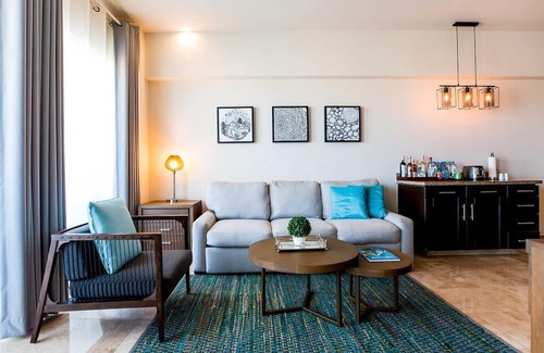Our chic suites feature flat-screen TVs, air conditioners, spacious balconies, and breathtaking views of the sea. They are also supplied with mini-refrigerators, dining areas, and well-equipped kitchens. You won't have to worry about not being able to use the internet while here because our beachfront property also provides wireless internet connectivity at no additional cost. Relax in our outdoor hot tub while taking in the stunning scenery from the terrace, which is equipped with beach chairs and an outdoor fireplace, among other things. Other services that guests can use to make the most of their stay include laundry facilities, exercise centers, and beauty salons among others. Particularly popular with couples and leisure travelers.
