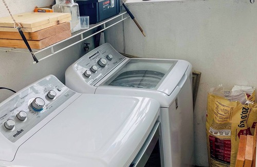 The kitchen is equipped with a refrigerator, as well as a coffee maker, cookware, and a blender. Enjoy the WiFi and TV. Bathroom amenities include a hair dryer, towels, and toilet paper. And you won't have to pack extra clothes, because you'll have a washer and dryer, too. Other amenities at this 2-bedroom, 1-bathroom rental include bed sheets, air conditioning, and heating.
