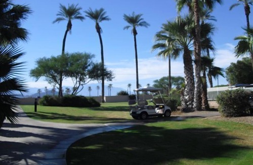 The golf course in the Indian Palms Country Club is beautiful and yet a round of golf is very affordable. You can walk from the house to the teeing ground. The garage is big enough for two cars and a golf cart.