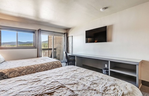 Perfect for a quick getaway! Elk Horn Lodge's double queen room sleeps up to four people. All of our rooms come furnished and with a balcony; great for just sitting back with a cup of Joe and watching the sunrise (or sunset) over Angel Fire. Included in this room are your own TV, mini-fridge, microwave, coffee maker (don't worry, coffee is on us), and toiletries. Please be aware this room is on the second floor and stairs are required to reach the entrance. During the winter months, please keep in mind you are traveling to the mountains. All our properties are maintained by professional snow-plowmen; we make every effort to ensure the property is accessible upon arrival. However, please be prepared for extreme weather conditions. A 4WD or AWD vehicle is highly recommended. Resort Properties of Angel Fire cannot be responsible for guests unable to reach the booked property due to a lack of a 4WD/AWD vehicle.