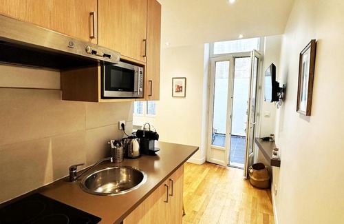 Coquet petit Studio Hyper centre Lumineux avec Terrasse offers accommodations in Marseille, a 10-minute walk from Marseille Saint-Charles Train Station and 1.1 miles from Joliette Metro Station. With inner courtyard views, this accommodation provides a terrace. The property is 1.4 miles from Plage des Catalans and within half a mile of the city center. With free Wifi, this apartment offers a satellite flat-screen TV, a washing machine, and a fully equipped kitchenette with a microwave and toaster. Towels and bed linen are featured in the apartment. The accommodation is non-smoking. Popular points of interest near the apartment include Vieux Port Metro Station, Castellane Metro Station, and Saint-Ferreol Street. Marseille Provence Airport is 14 miles away.