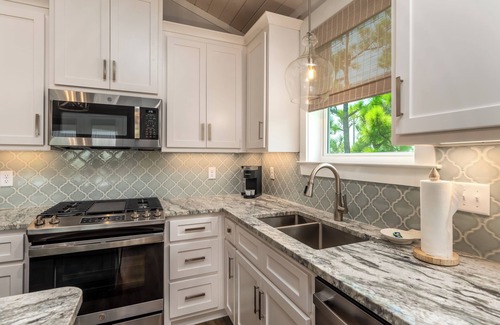 Welcome to the fabulous Coral Bay, your very own Luxury Island Villa overlooking beautiful Indian Bay, the perfect private waterfront cove for peaceful relaxation! Picture yourself unwinding on this dreamy island for your ultimate chill-out holiday! Fishing and Kayaking right off the back dock, or Relaxing and Reading, all from your vacation villa!! This swanky One Bedroom King Suite villa is decked out with every comfort you could wish for, boasting 5-Star luxury. Inside, your suite retreat boasts a top-notch gourmet kitchen, a full-sized fridge with an ice maker, a gas stove, dishwasher and even a microwave to whip up your culinary creations. Fancy sipping on frozen concoctions or cool coffee drink? Then you're in luck, with a Ninja blender and Keurig Coffee Maker! You can dine indoors or soak up the sun outdoors in your private dining area. The villa features soaring ceilings, chic LaZBoy furniture, charming Beach-themed art, and sumptuous high thread count linens and luxury mattresses. With space for up to 6 guests, the villa offers a King Bedroom suite, 2 cozy Twin Hall Bunk Beds, and a snug Queen Sleeper Sofa. Sink into dreamland on the medium-firm, high-quality mattresses in every room. The full bath is accessible from the King Suite and the hall, showcasing a spacious vanity with granite counters and a stunning walk-in shower. Entertainment is covered with TVs in the main living area and King suite, both equipped with smart features and complimentary WIFI internet. Each unit is equipped with a full-sized laundry.